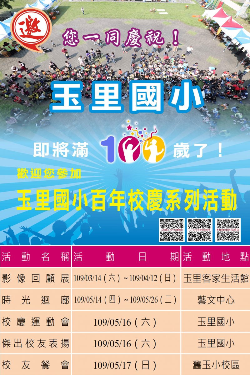 為因應新冠肺炎疫情,本校積極配合縣府防疫措施,原訂舉辦之百年校慶系列相關活動日期調整詳情如下: