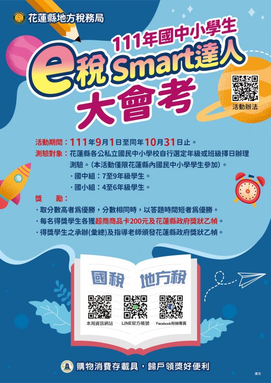 一、 | 依據該局「111年推廣統一發票兌獎多元服務措施辦理國中小學生『e稅Smart達人』大會考活動實施計畫」辦理。 |