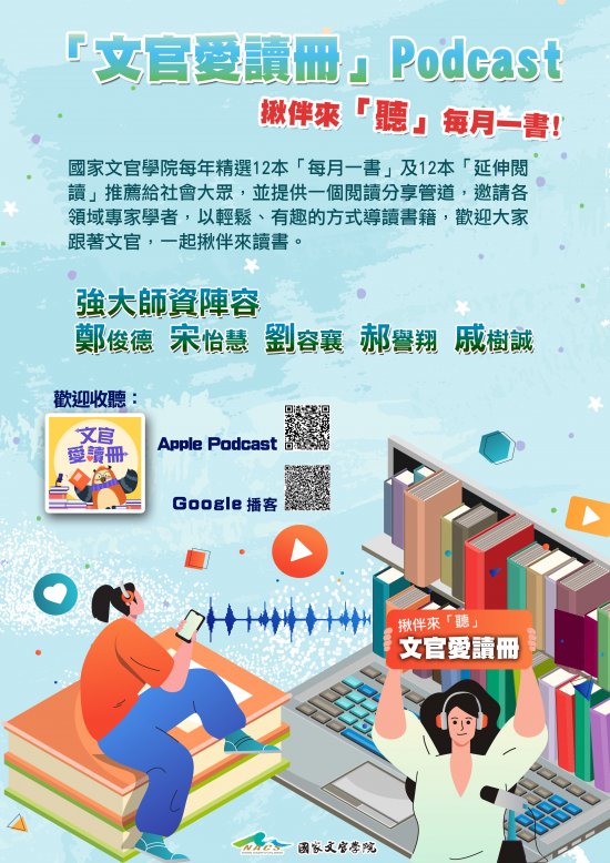 國家文官學院為推廣公務人員專書閱讀,113年度「每月一書」及「延伸閱讀」專書導讀課程已於「e等公務園+學習平臺」及「文官愛讀冊」Podcast頻道,請同仁多加利用。