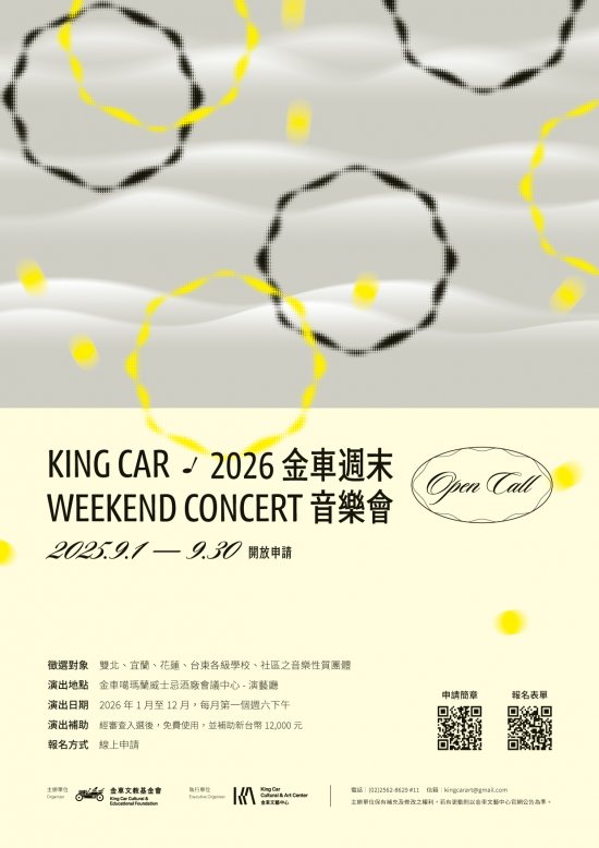 二、 | 「2026年金車週末音樂會」演出申請資訊 |